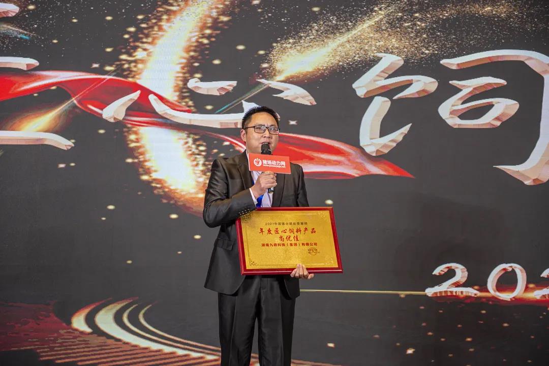 在頒獎(jiǎng)典禮上,集團(tuán)技術(shù)研發(fā)中心總經(jīng)理江書(shū)忠榮獲“年度領(lǐng)軍人物”,集團(tuán)教槽料產(chǎn)品“尚優(yōu)佳”榮獲“年度匠心無(wú)抗飼料產(chǎn)品獎(jiǎng)”。這是行業(yè)以及社會(huì)各界對(duì)九鼎集團(tuán)研發(fā)實(shí)力以及產(chǎn)品品質(zhì)的高度認(rèn)可及肯定。