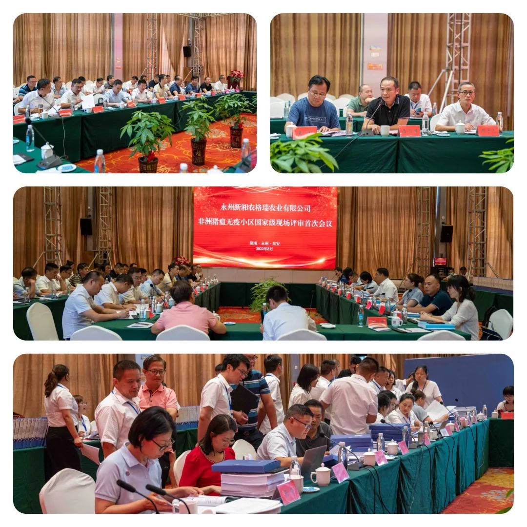 2022年8月9日,由吉林省動(dòng)物衛(wèi)生監(jiān)督所一級(jí)調(diào)研員任守愛、陜西省農(nóng)業(yè)農(nóng)村廳畜牧獸醫(yī)局高級(jí)獸醫(yī)師謝印乾一行組成的國家評(píng)估專家組來到東安縣,對(duì)九鼎集團(tuán)永州新湘農(nóng)格瑞農(nóng)業(yè)有限公司進(jìn)行了非洲豬瘟無疫小區(qū)國家級(jí)現(xiàn)場評(píng)審??h委副書記、縣長蔣華,縣委副書記李月紅陪同,永州新湘農(nóng)格瑞公司總經(jīng)理雷榮國等20余名中層以上管理人員參加了評(píng)審會(huì)議。