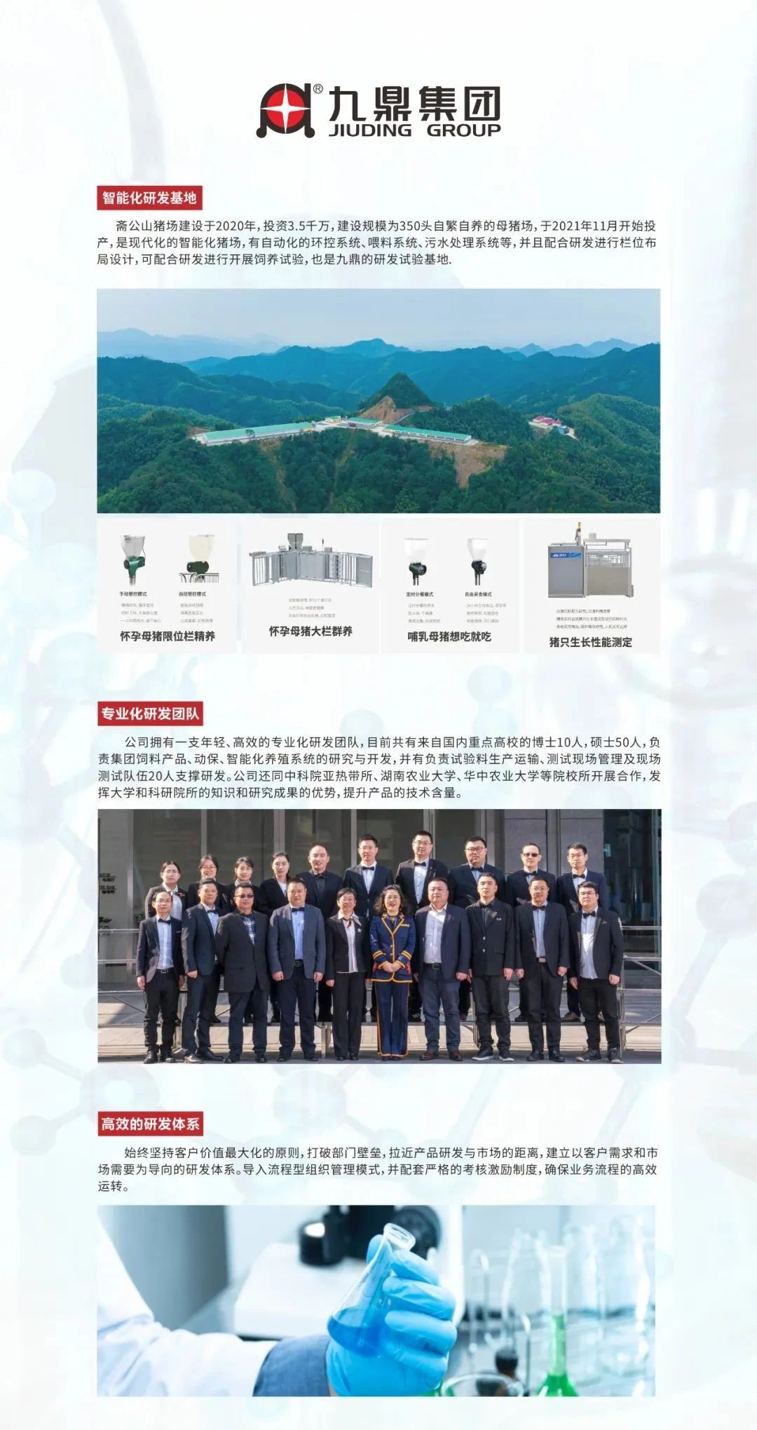 九鼎集團(tuán)29年來(lái)專業(yè)研發(fā)生產(chǎn)豬料,在產(chǎn)品創(chuàng)新和實(shí)踐上一直走在行業(yè)前列,未來(lái)九鼎也將繼續(xù)以客戶為中心,為廣大養(yǎng)殖企業(yè)提供優(yōu)質(zhì)的飼料產(chǎn)品及服務(wù),助力生豬養(yǎng)殖業(yè)走向高質(zhì)高效的發(fā)展道路!