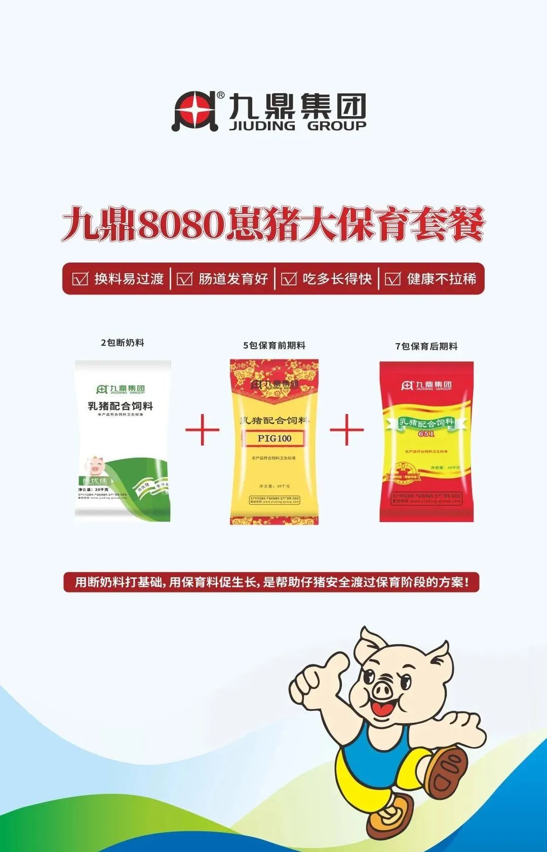 九鼎集團專注豬料生產(chǎn)研發(fā)29年,致力于為廣大養(yǎng)殖企業(yè)提供優(yōu)質(zhì)高效的飼料產(chǎn)品,在全國擁有分子公司近30家,年銷售飼料200萬噸,此次展會推出了全新的套餐系列: