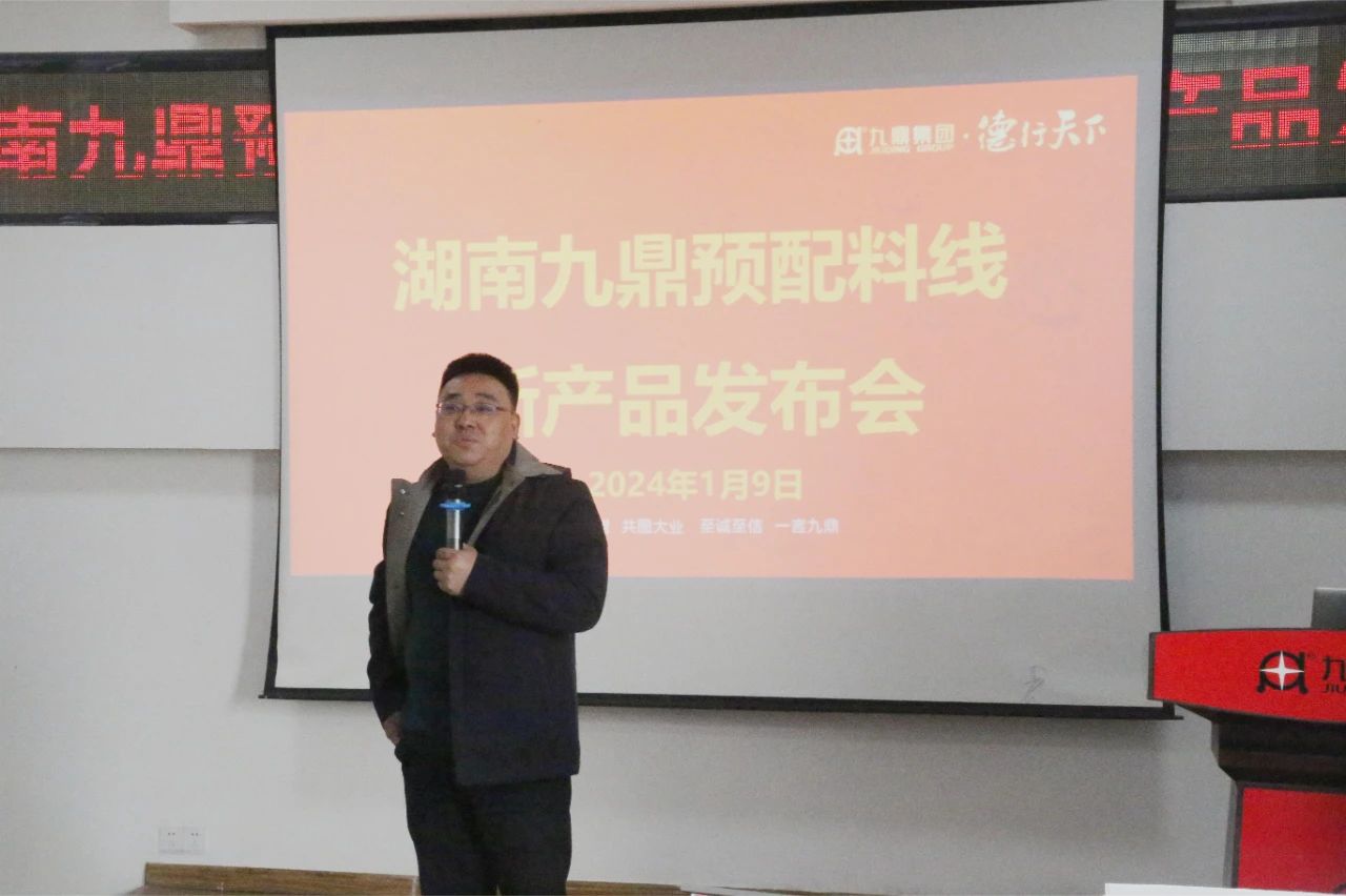 2024年1月9日清晨,岳陽新港區(qū)九鼎研究院三樓會議室熱鬧非凡,一場振奮人心的盛會拉開了帷幕。預配料線年會及新產(chǎn)品發(fā)布會聚集了各營銷公司的精英,座無虛席,見證了預混料新產(chǎn)品的盛大亮相!