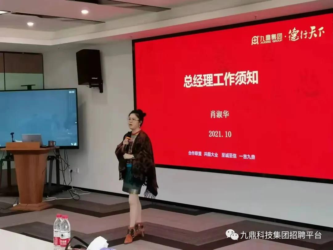 11月15日,九鼎集團(tuán)后備總經(jīng)理訓(xùn)練營培訓(xùn)如期舉行,九鼎集團(tuán)副總裁肖淑華及集團(tuán)總部各中心總經(jīng)理參與訓(xùn)練營授課工作,本次訓(xùn)練營為期4天,于11月18日完美收官。