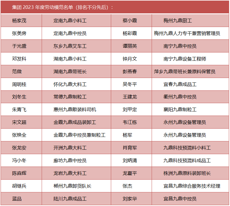 用汗水澆灌收獲,以實(shí)干篤定前行。為大力弘揚(yáng)九鼎文化,鼓舞激勵廣大九鼎人學(xué)習(xí)標(biāo)桿、趕超先進(jìn),集團(tuán)總部組織開展了“致敬價值創(chuàng)造者”勞動模范評選。經(jīng)嚴(yán)格篩選考察,授予楊家茂等30名員工2023年度“勞動模范”稱號。